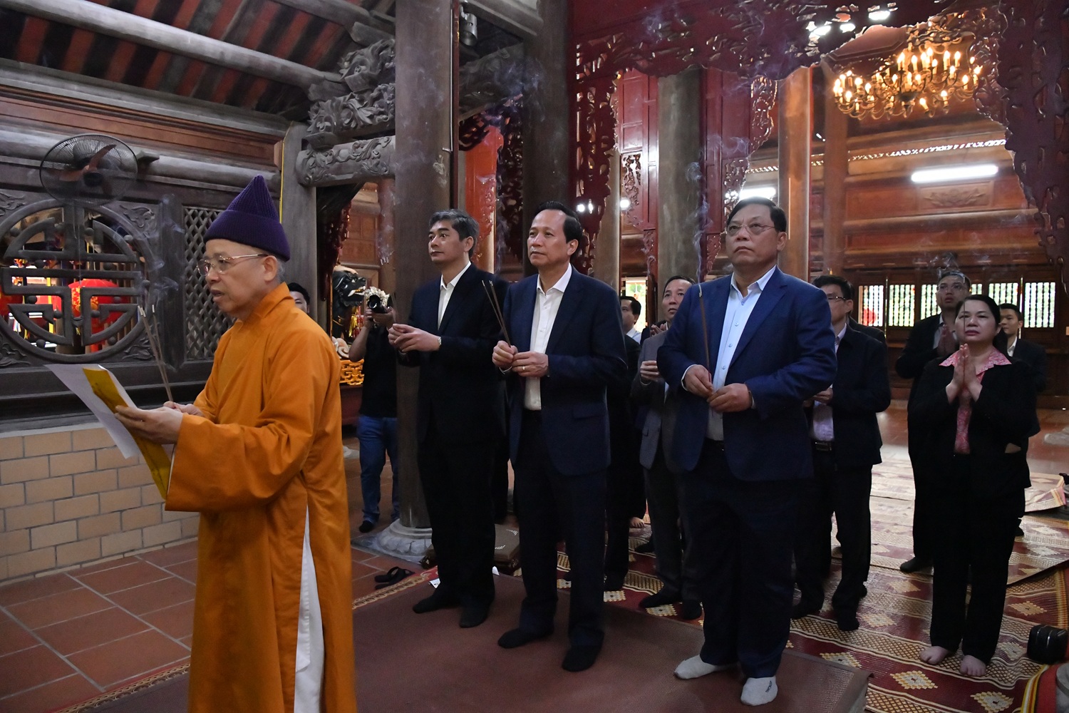 Đoàn công tác của Bộ thắp hương tại chùa Non Nước